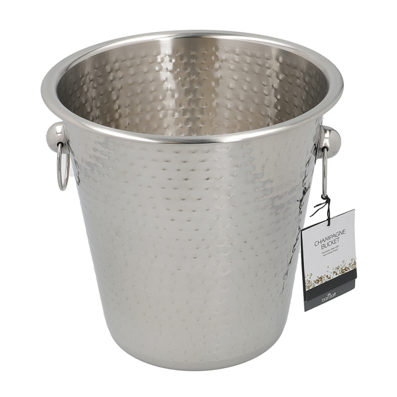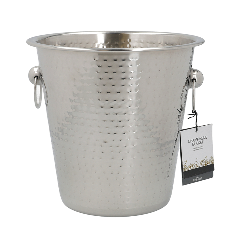 Placera vinkylaren mitt på bordet och njut av hur ljuset hoppar och gnistrar på det hammrade stålet. Kylarens vackra utseende gör den perfekt för formella fester, middagar eller speciella tillfällen.