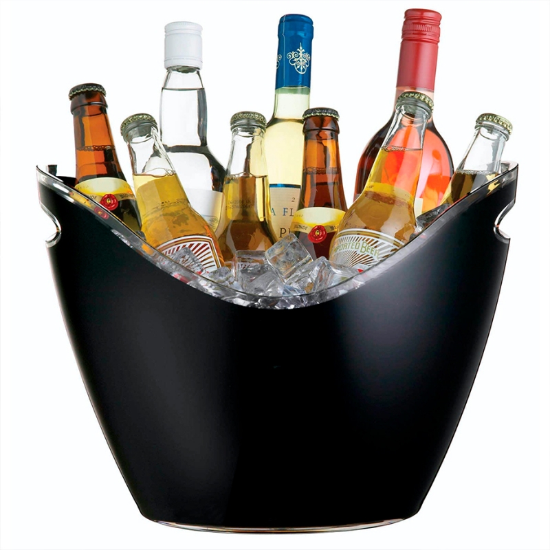 I denna vinkylare kombineras robust funktionalitet och eleganta kurvor för att skapa det ultimata festtillbehöret. Med gott om plats för flaskor och is, samt två handtag som gör det enkelt att hantera tunga lyft, håller denna smarta svarta vinkylare drycker kylda och redo för varje livlig tillställning.
